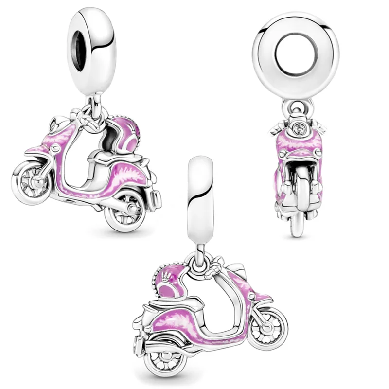 925 Sterling Silver Pink Series Charm Bead Hot Sale Pendant Jewelry Fit Original Pandora Bracelet/Necklace Clip Murano Glass Bag