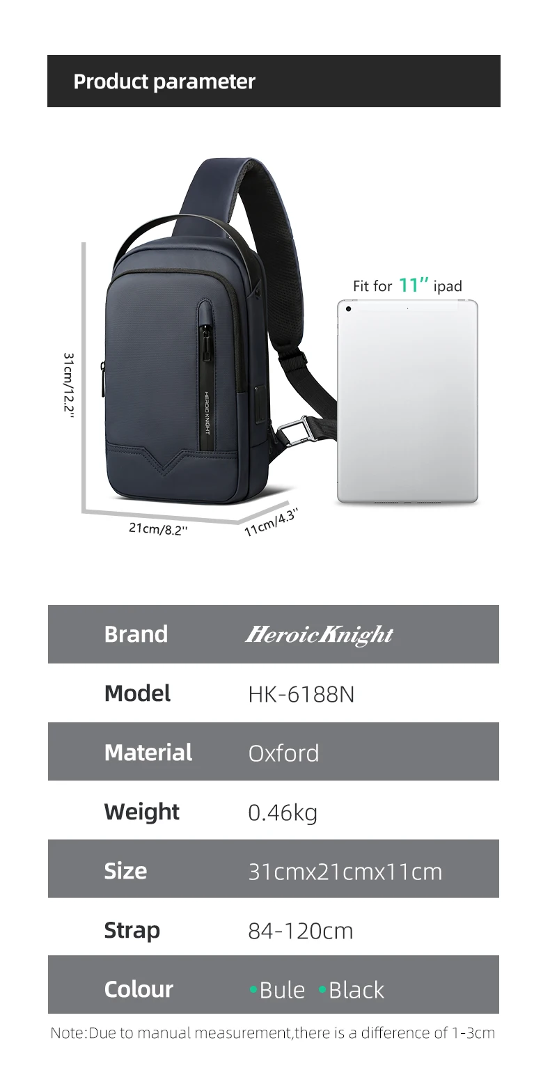 This shoulder bag for men . Made of Oxford fabric, delicate texture, comfortable and durable. Whether it is business or leisure, it can show the elegant charm of men. Single shoulder backpack design simple and generous, moderate capacity, easy to carry a variety of items. It is also a perfect gift for your lover and father.