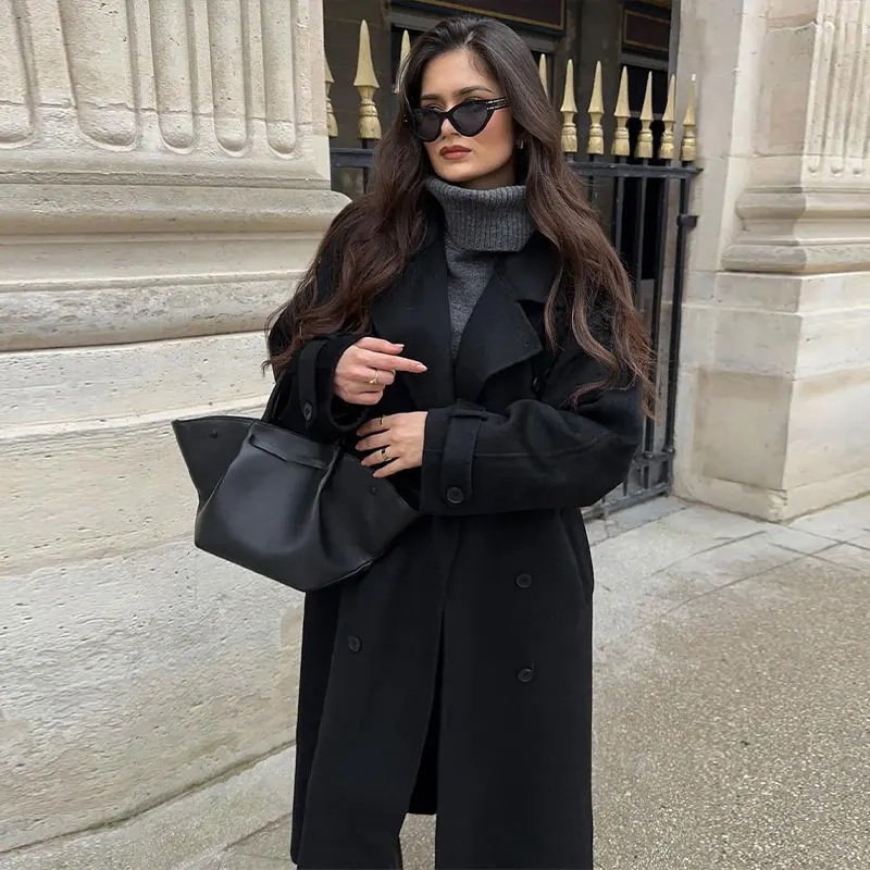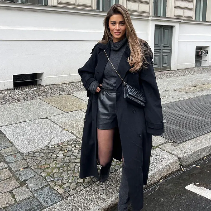Model Number: Casual Double-breasted Lapel Oversized Woolen Overcoat