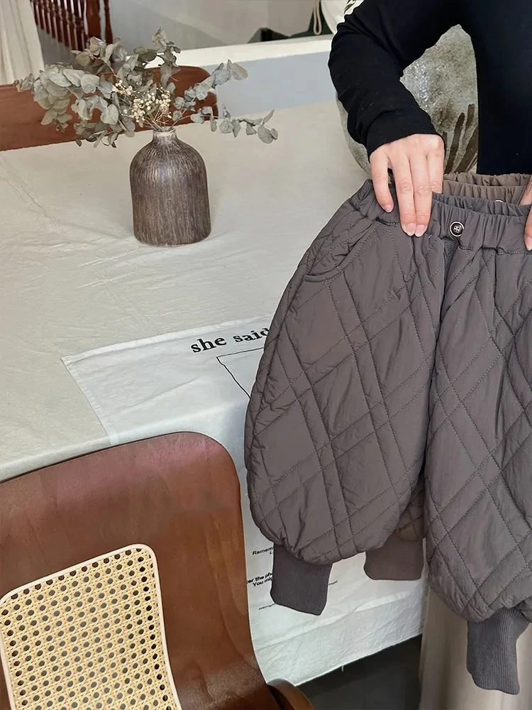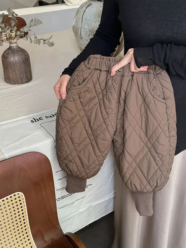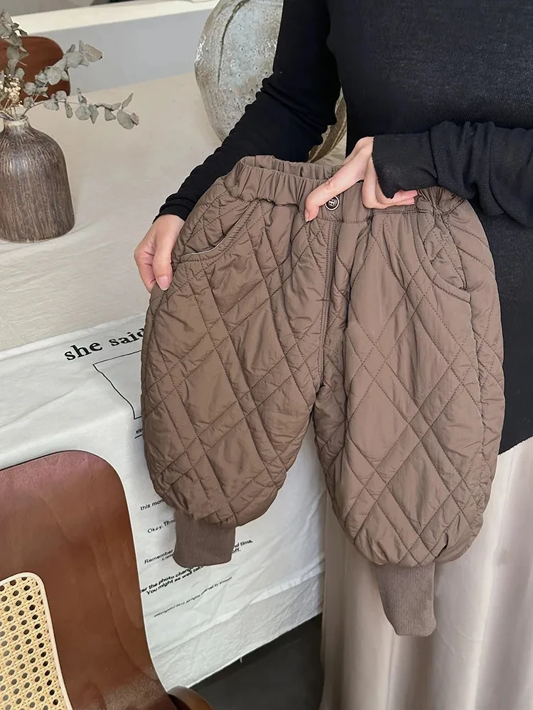 2-8Years Toddler Baby Winter Cotton Padded Warm Pants for Girls and Boys Children Loose Casual Snow Trousers with Pockets