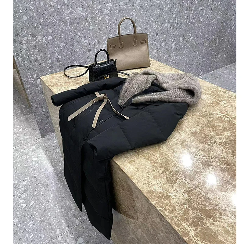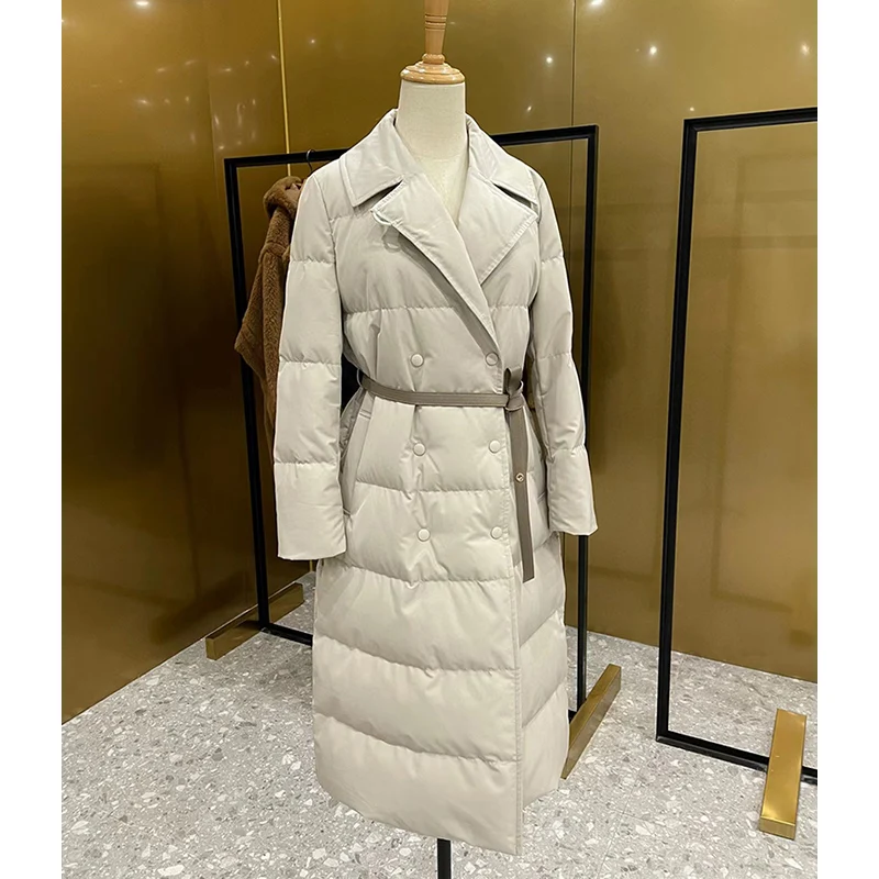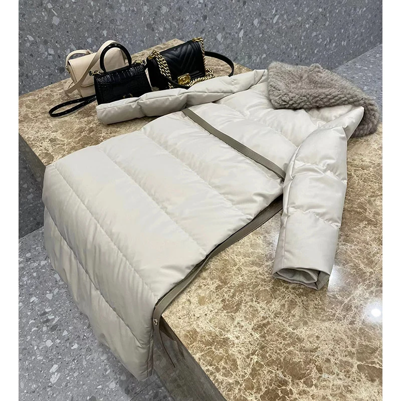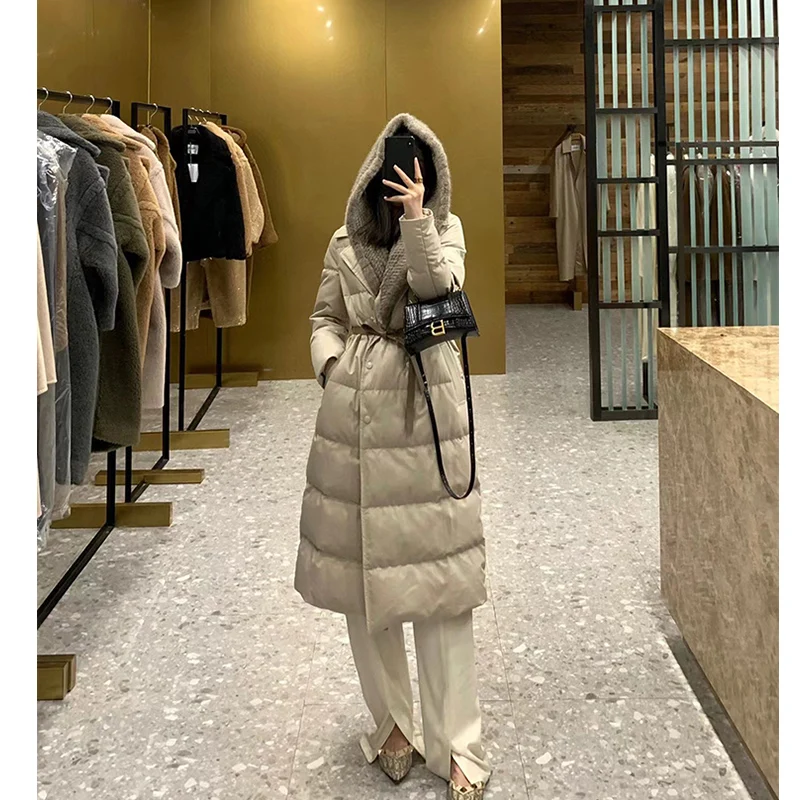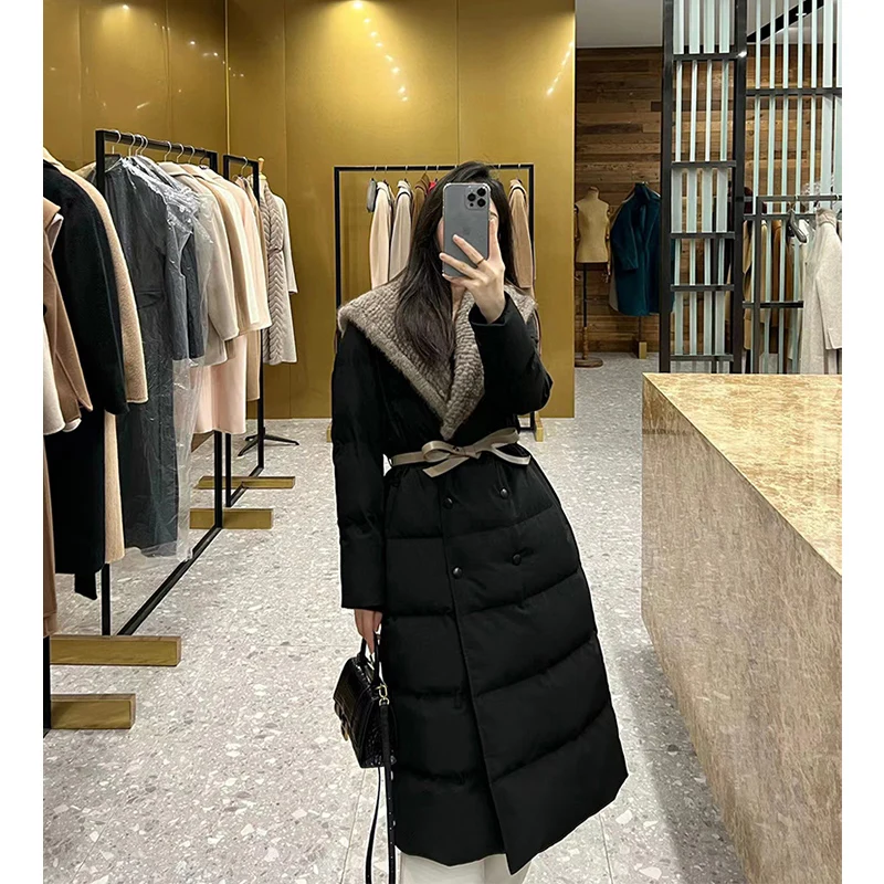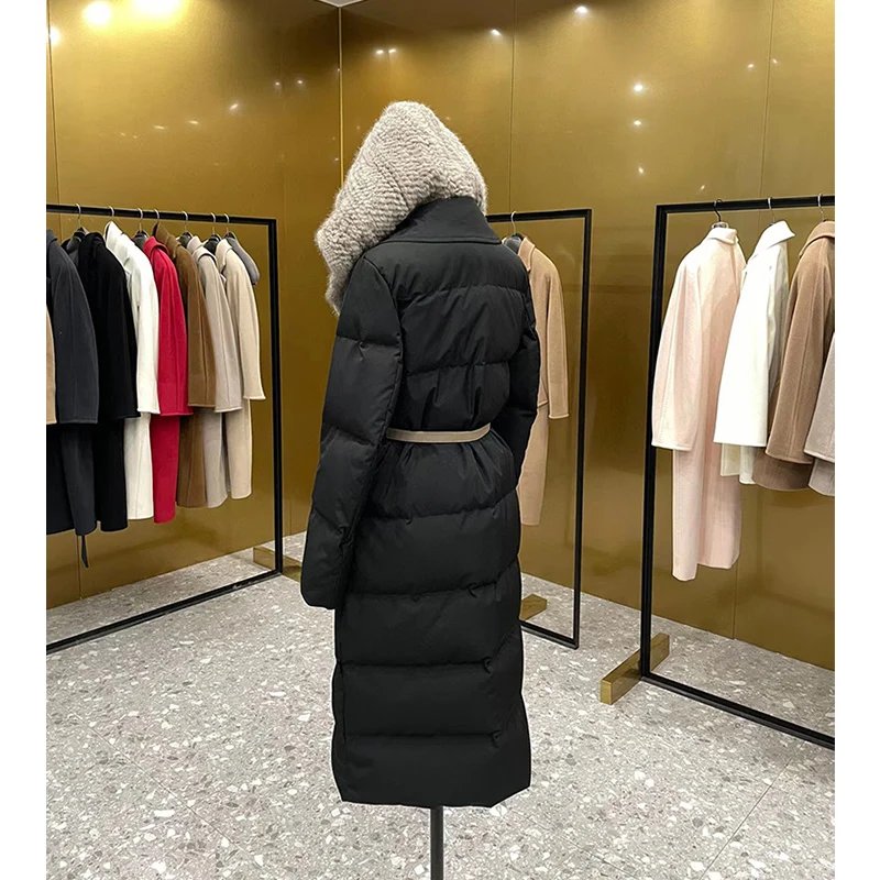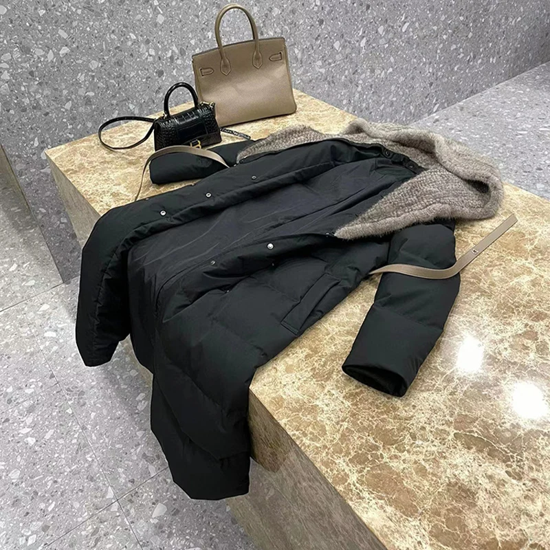 2023 Winter Women Long Coats Filling White Goose Down With Natural Real Mink Fur Collar Luxury Thick Warm Hooded Fashion Jacket